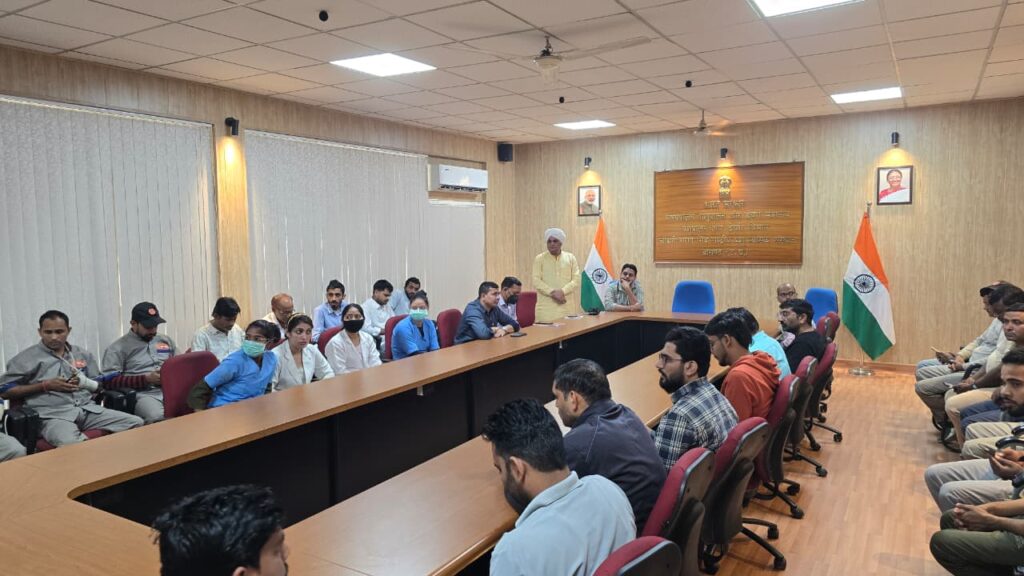 बागपत-- आज *चौधरी चरण सिंह राष्ट्रीय संस्थान बागपत में बड़ौत  मेडिसिटी हॉस्पिटल बड़ौत, जिला बागपत के  सौजन्य से एक कैंप का आयोजन* किया गया lइस कैंप का उद्देश्य एम्पलाइज स्टेट इंश्योरेंस कॉरपोरेशन (ईएसआईसी) के अंतर्गत आने वाले सभी लाभार्थियों को इसकी सुविधा के बारे में जानकारी प्रदान करना रहा l ताकि समय-समय पर स्वास्थ्य सुविधाओं का लाभ आवश्यकता अनुसार लिया जा सकेl कार्यक्रम का *उद्घाटन चौधरी गजेंद्र सिंह कुंडू, (खाप चौधरी उo प्रo) व डॉक्टर आलोक सहायक आयुक्त  के द्वारा संयुक्त रूप से फीता काटकर* किया गया l डॉ कपिल तोमर फिजिशियन, डॉ सुदेश कुमार व विक्रांत पवार पी आर ओ,  ईएसआईसी द्वारा मेडिसिटी हॉस्पिटल में उपलब्ध कराई जा रही सभी सुविधाओं के बारे में जानकारी दी l कार्यक्रम में उपस्थित सभी लाभार्थियों का ब्लड प्रेशर, दिल की धड़कन, शरीर में ऑक्सीजन की मात्रा व शुगर आदि की जांच की गईl डॉक्टर कपिल तोमर द्वारा हृदय रोग के बारे में,  वायरल बुखार से बचने के सुझाव, नियमित व्यायाम, आहार के बारे में तथा दिनचर्या के बारे में लाभकारी जानकारी प्रदान कीl सिस्टर रिया तोमर, फरहीन अंसारी, परवीन खान व ज्योति द्वारा उपरोक्त कार्यक्रम में जांच आदि में भरपूर सहयोग कियाl इस अवसर पर निखिल धनखड़, राजा, सतपाल, मोहित चिकारा सहित लगभग 40 लाभार्थी उपस्थित रहे