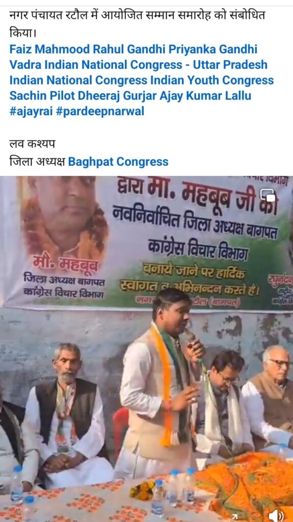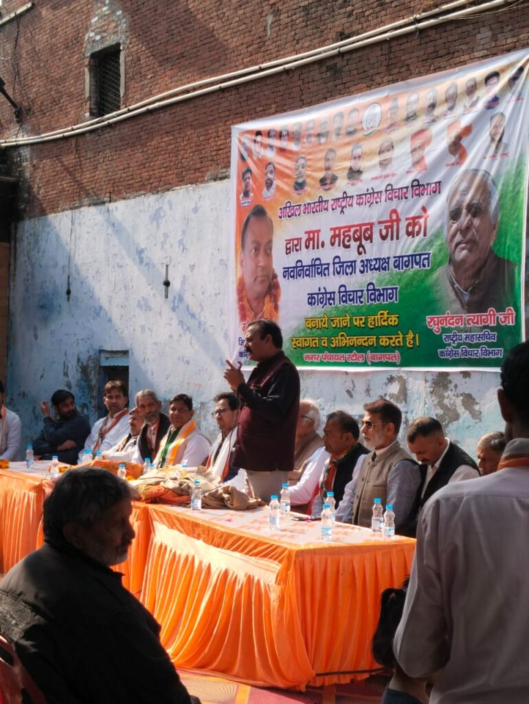 उन्होंने कहा कि कांग्रेस पार्टी ही देश को सही दिशा दे सकती है। देश की जनता को तानाशाही सरकार से छुटकारा चाहिए और कांग्रेस पार्टी ही इस तानाशाही सरकार से राहुल गांधी जी के नेतृत्व में देश की जनता को तानाशाही सरकार से छुटकारा दिलाएगी। जिला विचार कांग्रेस जनपद बागपत अध्यक्ष बनाए जाने पर मास्टर महबूब भाई को उन्होंने शुभकामनाएं भी दी।
