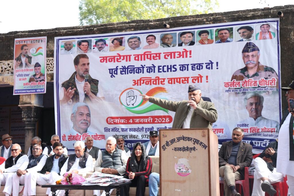 कर्नल रोहित चौधरी ने कहा कि मनरेगा के माध्यम से मज़दूरों के संवैधानिक अधिकारों और काम के हक़ पर भाजपा की केंद्र सरकार द्वारा प्रहार किया जा रहा है तथा पूर्व सैनिकों से भूतपूर्व सैनिक अंशदायी स्वास्थ्य योजना का अधिकार छीना जा रहा है। उन्होंने केंद्र सरकार से पूर्व सैनिकों के ईसीएचएस के ₹14,000 करोड़ के बकाया मेडिकल बिल तुरंत जारी करने की मांग की और अग्निवीर योजना को पूर्णतः समाप्त करने के लिए संघर्ष जारी रखने की प्रतिबद्धता भी जताई।