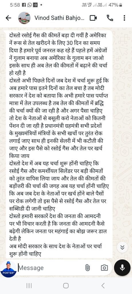 दोस्तो रसोई गैस की कीमतें बड़ा दी गयीं है अमेरिका नें रूस से तेल खरीदने के लिए 30 दिन का समय दिया है हमारे पूर्व जनरल कह रहे हैं पहले हमें अंग्रेजों नें गुलाम बनाया अब अमेरिका के गुलाम बन जाओ इसके साथ ही अब तेल की कीमतों में बढ़ाने की चर्चा हो रही है