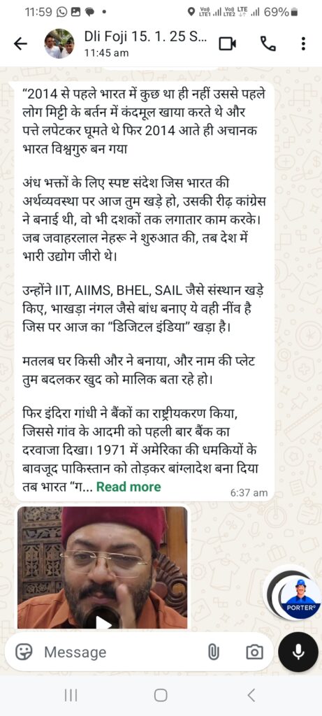 अंध भक्तों के लिए स्पष्ट संदेश जिस भारत की अर्थव्यवस्था पर आज तुम खड़े हो, उसकी रीढ़ कांग्रेस ने बनाई थी, वो भी दशकों तक लगातार काम करके। जब जवाहरलाल नेहरू ने शुरुआत की, तब देश में भारी उद्योग जीरो थे।