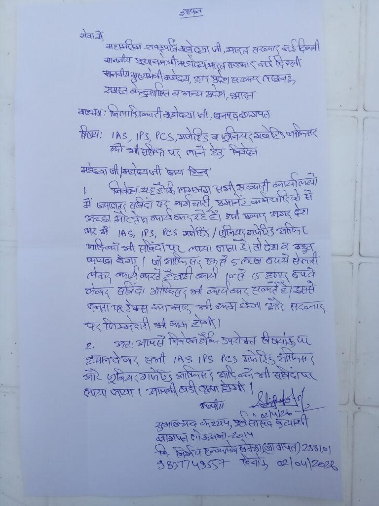 सुभाष चंद कश्यप पूर्व सांसद प्रत्याशी बागपत लोकसभा ने जिलाधिकारी महोदया जनपद बागपत के माध्यम से महामहिम राष्ट्रपति जी प्रधानमंत्री जी और सभी केंद्र शासित प्रदेश और प्रदेशों के मुख्यमंत्री को संबोधित एक विज्ञापन भेजा। जिसमें मांग की है कि देशभर के सरकारी कार्यालय में संविदा कर्मचारियों की तरह से आईएएस आईपीएस पीसीएस गजेटेड और जूनियर गजेटेड ऑफीसरों की भर्ती भी संविदा पर लाया जाना चाहिए। इससे देश की जनता पर टैक्स का बोझ कम होगा और सरकार की जिम्मेदारी भी कम हो जाएगी। उन्होंने बताया कि वही सविता कमी 10 से बीस हजार महीना सैलरी लेकर स्थाई सरकारी कर्मचारियों से अच्छा और तेज सरकारी कार्यालय में सरकारी काम करता है। अगर आईएएस आईपीएस पीसीएस गजेटेड और जूनियर गैजेटेड ऑफीसर संविदा पर लाए जाते हैं तो एक लाख रुपए से पांच लाख तक सैलरी की बजाय बीस से तीस हजार रुपए लेकर भी संविदा ऑफिसर वही कार्य अच्छा और तेज गति से कर सकता है।