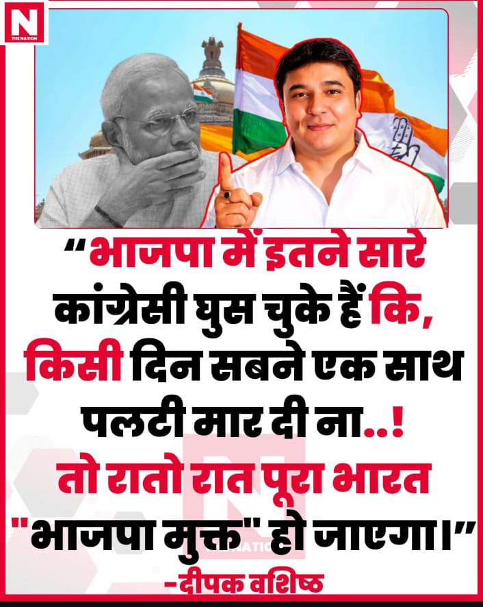 दोस्तो अब बताया जा रहा है कि BJP में इतने कोंग्रेसी आ चुके हैं अगर यह सभी फिर से कांग्रेस में चले गए तो देश BJP मुक्त देश हो जायेगा अब हम कोंग्रेसियों को इसी सोच को बदलना है
