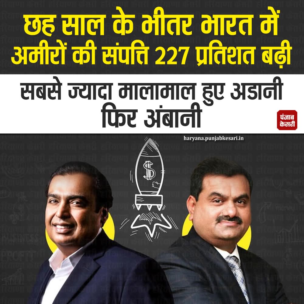 छह साल के भीतर भारत में अमीरों की सम्पत्ति 227 प्रतिशत बड़ी अडानी उसके बाद अम्बानी माला माल हुए