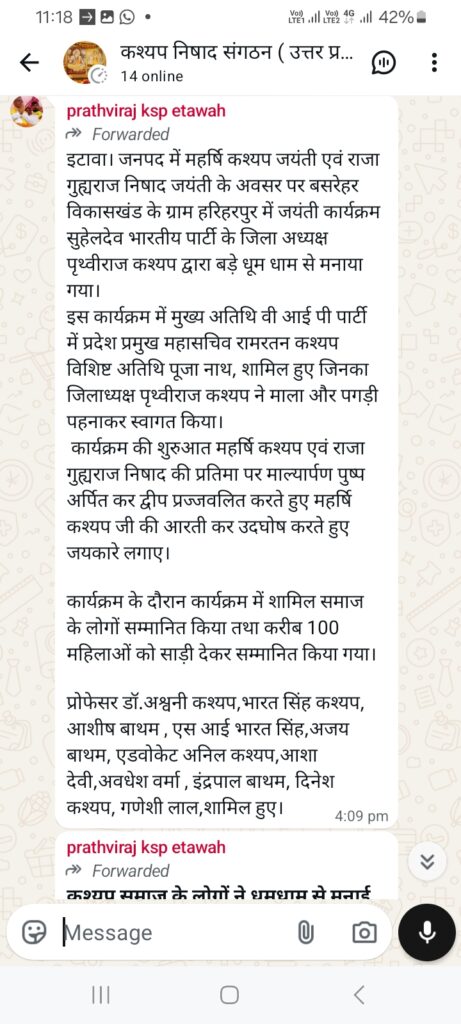 प्रोफेसर डॉ.अश्वनी कश्यप,भारत सिंह कश्यप, आशीष बाथम , एस आई भारत सिंह,अजय बाथम, एडवोकेट अनिल कश्यप,आशा देवी,अवधेश वर्मा , इंद्रपाल बाथम, दिनेश कश्यप, गणेशी लाल,शामिल हुए।