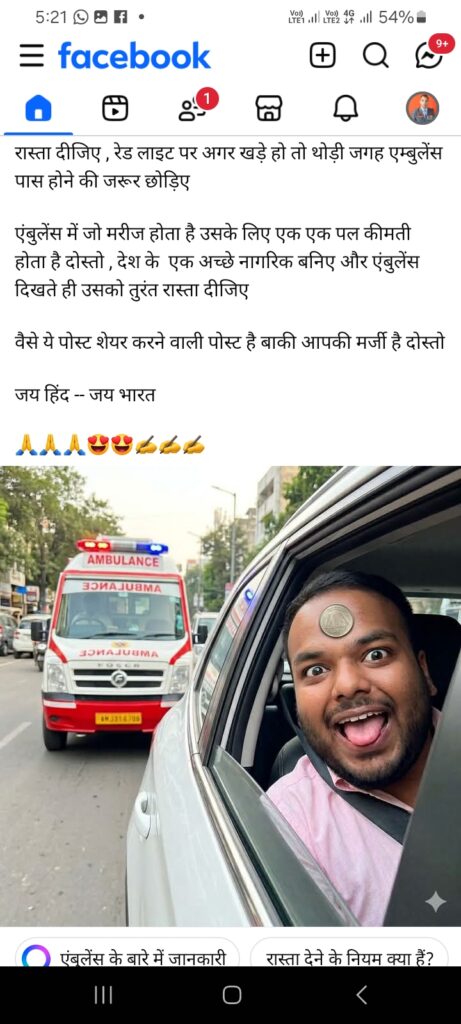 एंबुलेंस में जो मरीज होता है उसके लिए एक एक पल कीमती होता है दोस्तो , देश के एक अच्छे नागरिक बनिए और एंबुलेंस दिखते ही उसको तुरंत रास्ता दीजिए
