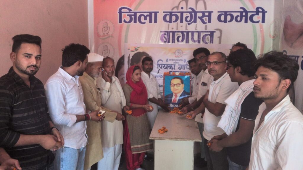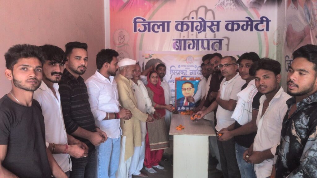 जिला कांग्रेस कमेटी बागपत पर आज बड़ी ही सादगी पूर्ण तरीके से कांग्रेस कार्यकर्ताओं ने संविधान के मुख्य वास्तुकार एवं समाज सुधारक बाबा भीमराव अंबेडकर की जयंती मनाई, कार्यक्रम में मैं बाबा भीमराव अंबेडकर के मूल्य एवं आदर्शों पर चलने का आवाहन कर जिला कांग्रेस कमेटी ने संविधान की रक्षा करने का प्रण लिया, कार्यक्रम में मुख्यतः उपस्थित रहे जिला अध्यक्ष लव कश्यप ब्लॉक अध्यक्ष वरिष्ठ नेता चौधरी ओमपाल सिंह विधि प्रपोज जिला अध्यक्ष सुनील शर्मा जी जिला महासचिव वकील अहमद जी जिला महासचिव आंसू पंडित जी जिला सचिव पवन कश्यप जी जिला सचिव अंजू कश्यप जी मंडल अध्यक्ष रणधीर कश्यप जी एवं पार्टी में आज ही ज्वाइन हुए विक्रांत धामा जी एवं कार्यकर्त गण