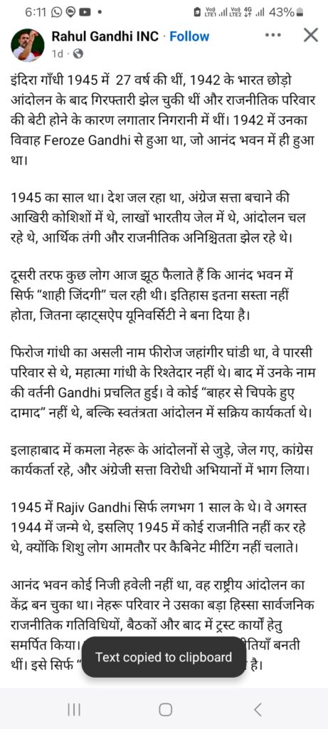 दूसरी तरफ कुछ लोग आज झूठ फैलाते हैं कि आनंद भवन में सिर्फ “शाही जिंदगी” चल रही थी। इतिहास इतना सस्ता नहीं होता, जितना व्हाट्सऐप यूनिवर्सिटी ने बना दिया है।