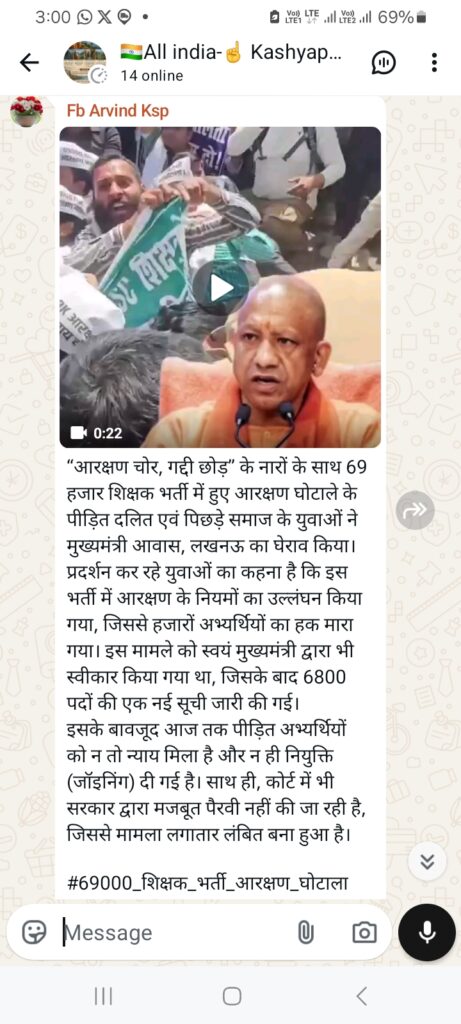 Spread the love 69000_शिक्षकभर्तीआरक्षण_घोटाला Post navigation दोस्तो “AAP” की पूरी बर्बादी की इस लिस्ट में सिर्फ 4 लोग ऐसे हैं जो आज भी पालिटिक्स मैं Relevant हैं जिन्हें लोग आज भी सुन#ना पसंद करते हैं क्योंकि उन्होंने हमेशा सच बोला और धीरे#धीरे Congress से जुड़े और जुड़े नहीं तो Congress को समझा ! !! श्री मोनू कश्यप हत्याकांड जसाल शामली उo प्रo !! * ये हत्या नहीं साजिश है 27.4.2026 को शामली चलो विकसित प्रदेश उत्तर प्रदेश!! * हत्याकांड को सरकार के समक्ष रखने के लिए कश्यप एकता समिति को ठोस,सूक्ष्म,तथ्यात्मक के माध्यम से अपनी बात रखनी चाहिए माननीय केंद्र और माननीय प्रदेश की सरकार के समक्ष!! * ज्ञापन का विषय :- ( श्री मोनू हत्याकांड जसाल शामली विकसित प्रदेश उत्तर प्रदेश ) हत्याकांड/ हत्या/ अत्याचार की निष्पक्ष जांच त्व त्वरित न्याय हेतु!! * सूक्ष्म विवरण :-( तारीख 27. 4.2026) को स्थान (शामली SSP कार्यालय) सुबह 10:00 बजे ( कश्यप समाज के व्यक्ति का नाम मोनू कश्यप ( मृतक ) के साथ हुई नरसिंग हत्या / हिंसा की घटना! * संवैधानिक कानून उपयुक्त मांग :- फास्ट ट्रैक जांच मामले की जांच उच्च स्तरीय टीम ( SIT ) द्वारा फास्ट ट्रैक कोर्ट में की जाए! * दबंग की गिरफ्तारी :- नामजद व अज्ञात दोषियों की जल्द से जल्द गिरफ्तारी हो जिससे कि पीड़ित परिवार व कश्यप समाज का विश्वास भारतीय संविधानिक कानून पर बना रहे भविष्य में! * कश्यप पीड़ित परिवार को सुरक्षा :- परिवार को जान माल की सुरक्षा तत्वरित ( तत्काल ) प्रदान की जाए! * पीड़ित कश्यप परिवार को मुआवजा :- पीड़ित परिवार को समुचित आर्थिक मुआवजा और सरकारी नौकरी दी जाए! * चेतावनी :- न्यान मिलने पर कश्यप समाज लोकतांत्रिक तरीके से धरना / प्रदर्शन करने को विवश होगा! * ज्ञापन देने का तरीका :- माननीय जिला अधिकारी ( DM ) महोदय जी, माननीय वरिष्ठ पुलिस अधीक्षक ( SSP ) महोदय जी, माननीय भारतीय पिछड़ा आयोग जी एवं माननीय गृह मंत्रालय जी!! * प्रस्तुति :- कश्यप एकता प्रतिनिधिमंडल के साथ जाकर ज्ञापन सौपे, न कि केवल डाक द्वारा भेजें! * भाषा शैली :- भाषा कठोर लेकिन संवैधानिक होनी चाहिए जो न्याय के प्रति आक्रोश और न्याय की मांग को स्पष्ट करें! * संबिंदु :- अत्याचारों का हवाला देते हुए बताएं कि समाज को किस प्रकार से निशाना बनाया जा रहा है! * सूक्ष्म बिंदु :- पिछले मामलों का हवाला देकर कार्यवाही की निष्क्रियता पर सवाल उठाए! जय भीम जय कांशीराम जय भारत नमो बुद्धाय!!