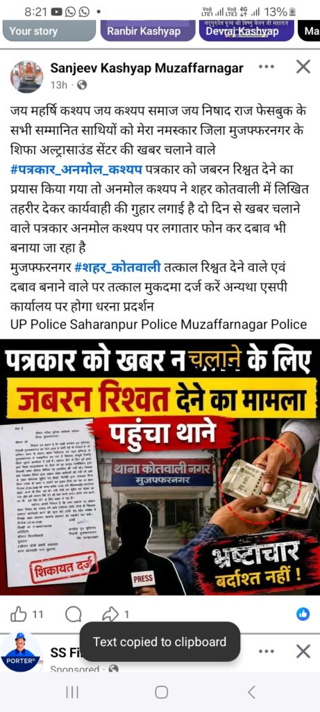 Spread the love Post navigation यूपी कैडर के आई पी एस अजय पाल… जो बंगाल चुनाव में आब्जर्वर बनाए गए है.. अब उनके खिलाफ …फालता थाने में दी गई शिकायत दर्ज हुई है…प्रेषक:इसाफपुर ईन-चार्जफलता थानादक्षिण 24 परगनापश्चिमबंग – 743504 #ज्वालागढ़, #सरधना जनपद #मेरठ निवासी वीक्रांत उर्फ सोनू कश्यप जी की संदिग्ध एवं दर्दनाक मृत्यु ने पूरे समाज को झकझोर कर रख दिया है। पिछले कई दिनों से लापता रहने के बाद उनका शव पिलखुवा (जनपद हापुड़) में बरामद होना कई गंभीर सवाल खड़े करता है।.
